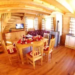 Dit chalet beschikt over een patio en een zitruimte, evenals mediavoorzieningen zoals een satelliet-TV. Naast een bank beschikt het interieur over een stenen open haard. Tot de badkamerfaciliteiten behoren ook een apart toilet en een douche. Slippers zijn inbegrepen voor extra comfort.